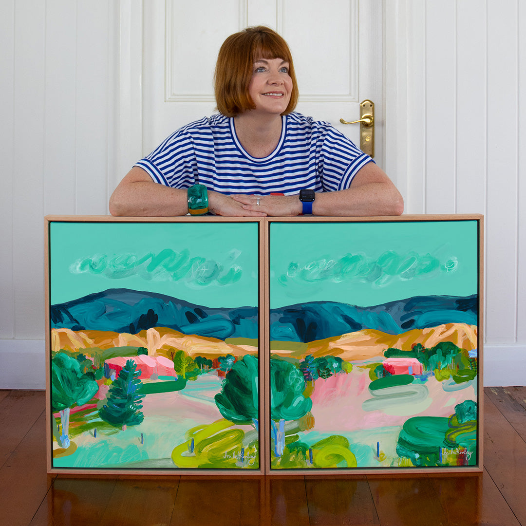 Although ‘Emerald Drift and ‘Green Pulse’ were painted as a pair (diptych), they hold their own unique presence and emotion, enabling them to be purchased and hung as stand-alone pieces of art.