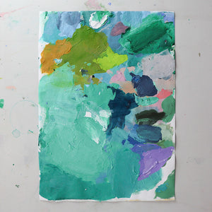 A3 original Madeleine McKinlay Art Palette. This palette was created when painting 'Valley Hideaway' original artwork.