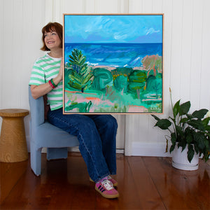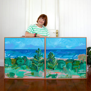 Although ‘Indigo Swell’ and ‘Pink Shores’ were painted as a pair (diptych), they hold their own unique presence and emotion, enabling them to be purchased and hung as stand-alone pieces of art.